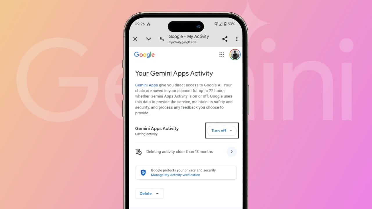 - Open Gemini activity controls.